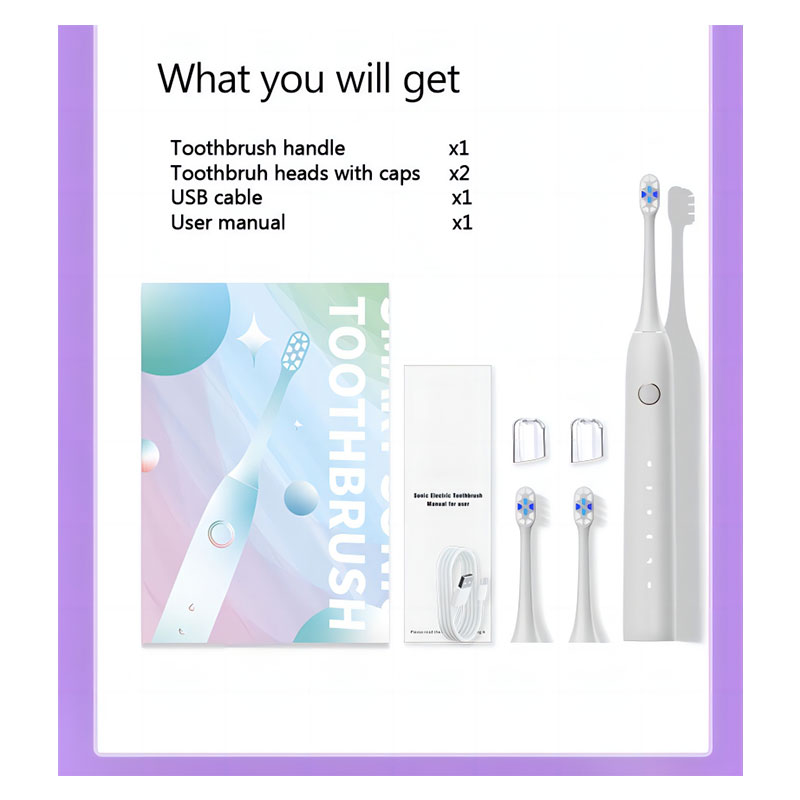 Ipx7 वाटरप्रूफ सोनिक इलेक्ट्रिक टूथब्रशको उत्पादन प्याकेज