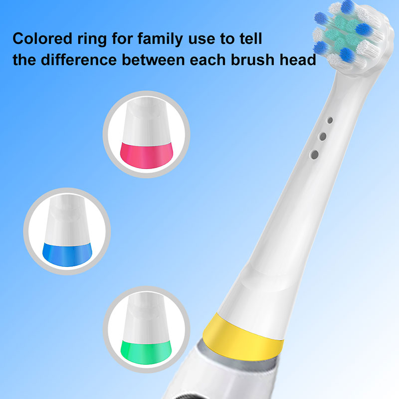 2. प्रत्येक ब्रश टाउको बीचको भिन्नता बताउन पारिवारिक प्रयोगको लागि रंगीन औंठी।
